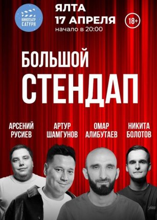 - БОЛЬШОЙ СТЕНДАП Арсений Русиев Артур Шамгунов, Омар Алибутаев, Никита Болотов