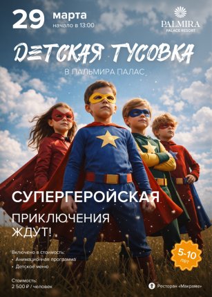 - Детская тусовка в Пальмира Палас. Супергеройская вечеринка. Приключения ждут!